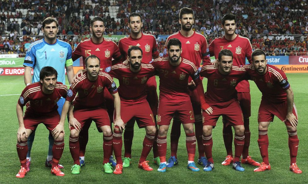 España: Casillas, Juanfran, Piqué, Ramos, Jordi Alba, Busquets, Koke, Silva, Isco, Iniesta, Morata.