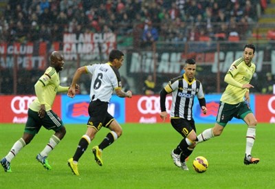 Árbitro: A. Damato Amonestó con tarjetas amarillas a Domizzi y Pinzi por parte del Udinese y a Pazzini por parte del Milan en el Estadio Communale Friuli del Udinese ante 35.000 espectadores.